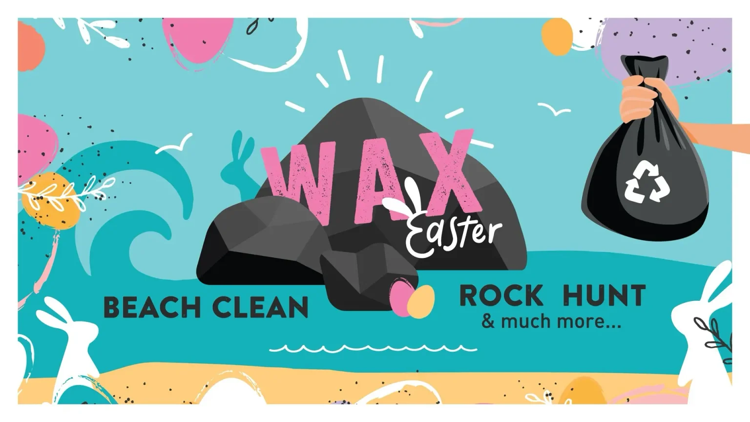 Join us at WAX Watergate for our Easter Beach Clean and Egg Hunt. Sign in, grab your beach cleaning gear and help tidy the shoreline while searching for special WAX logo rocks hidden along the beach. Return with a bag of rubbish and a marked rock to claim a refreshing drink and an Easter egg for each child